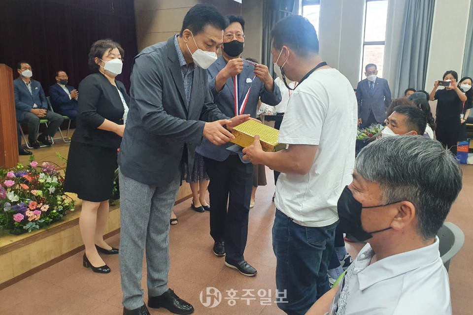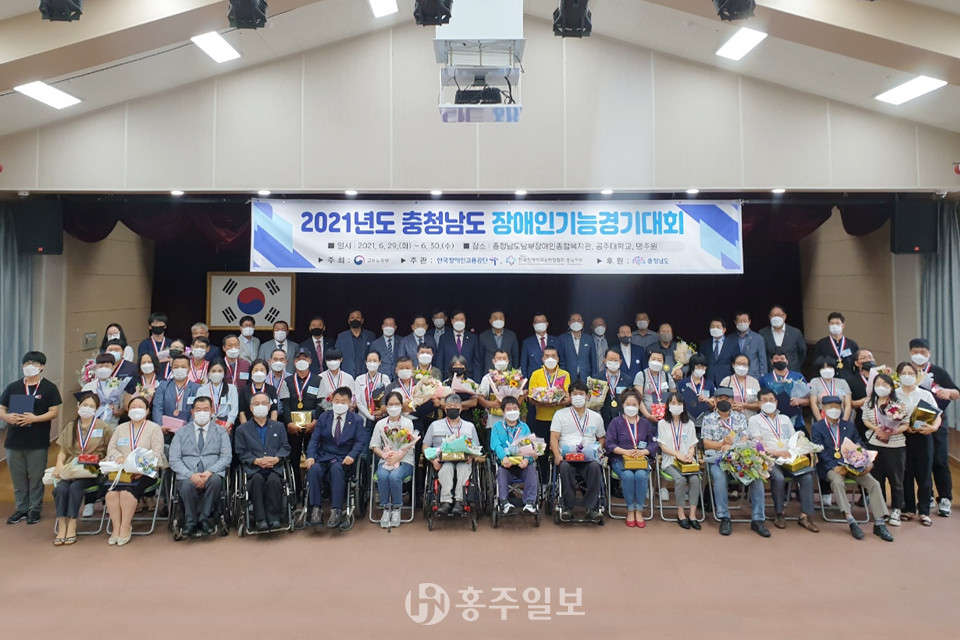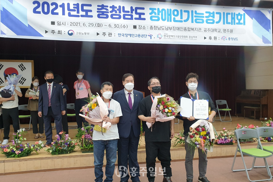 (사)충남지체장애인협회 홍성군지회이 공주시에서 개최된 2021년도 충남장애인기능경기대회에 출전해 금상 2명, 은상 2명, 동상 3명 등 총 7명의 수상자를 배출하는 쾌거를 거뒀다.<사진>