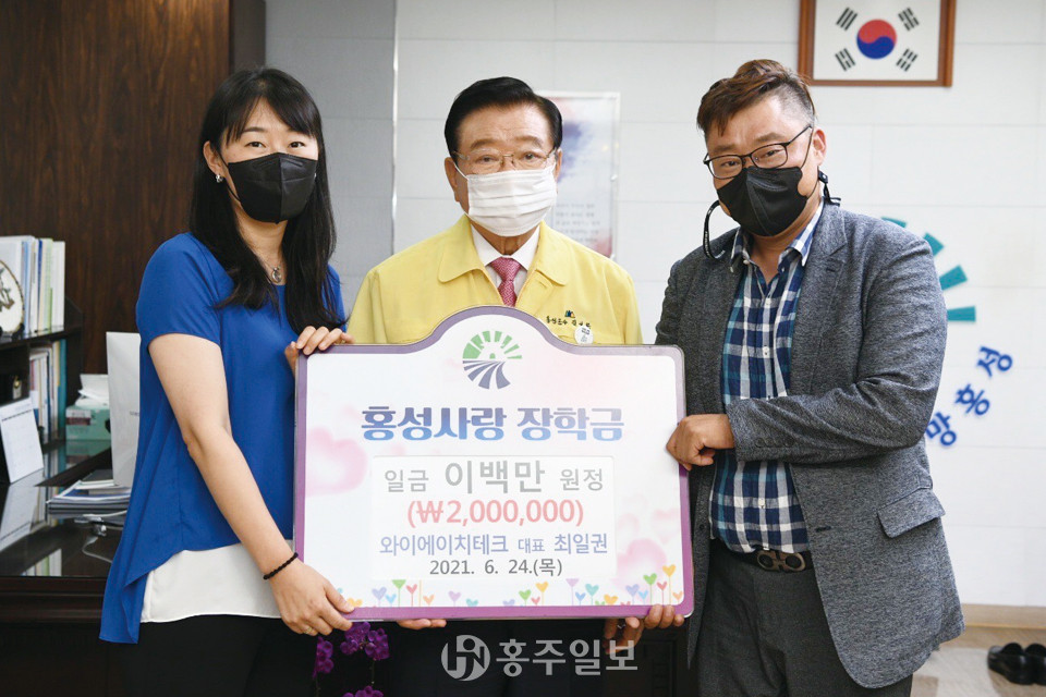 광천읍 소재 통신업체인 와이에이치테크(대표 최일권)가 지난달 25일 홍성사랑장학금을 기탁했다.