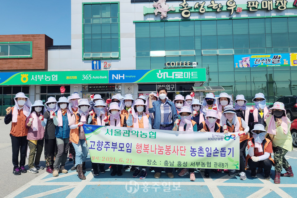 서부농협(조합장 표경덕)은 지난 21일 서울 관악농협(조합장 박준식) 고향주부모임 행복나눔봉사단(회장 나순희) 회원 30명과 농협 충남영업본부 직원 18명과 함께 연계해 서부면 소재 농가를 방문해 마늘캐기, 감자캐기, 감자넝쿨 제거 등 농촌일손돕기 실시했다.