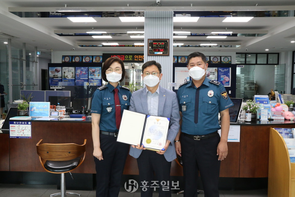 예산경찰서(총경 이미경)는 지난달 24일 관내 금융기관 직원의 현금인출 중단·신속한 판단과 대처로 보이스피싱 사기 피해를 막아준 것과 관련해 해당 금융기관을 직접 방문 직원 김 아무개 씨에게 감사장을 수여하고 격려했다.