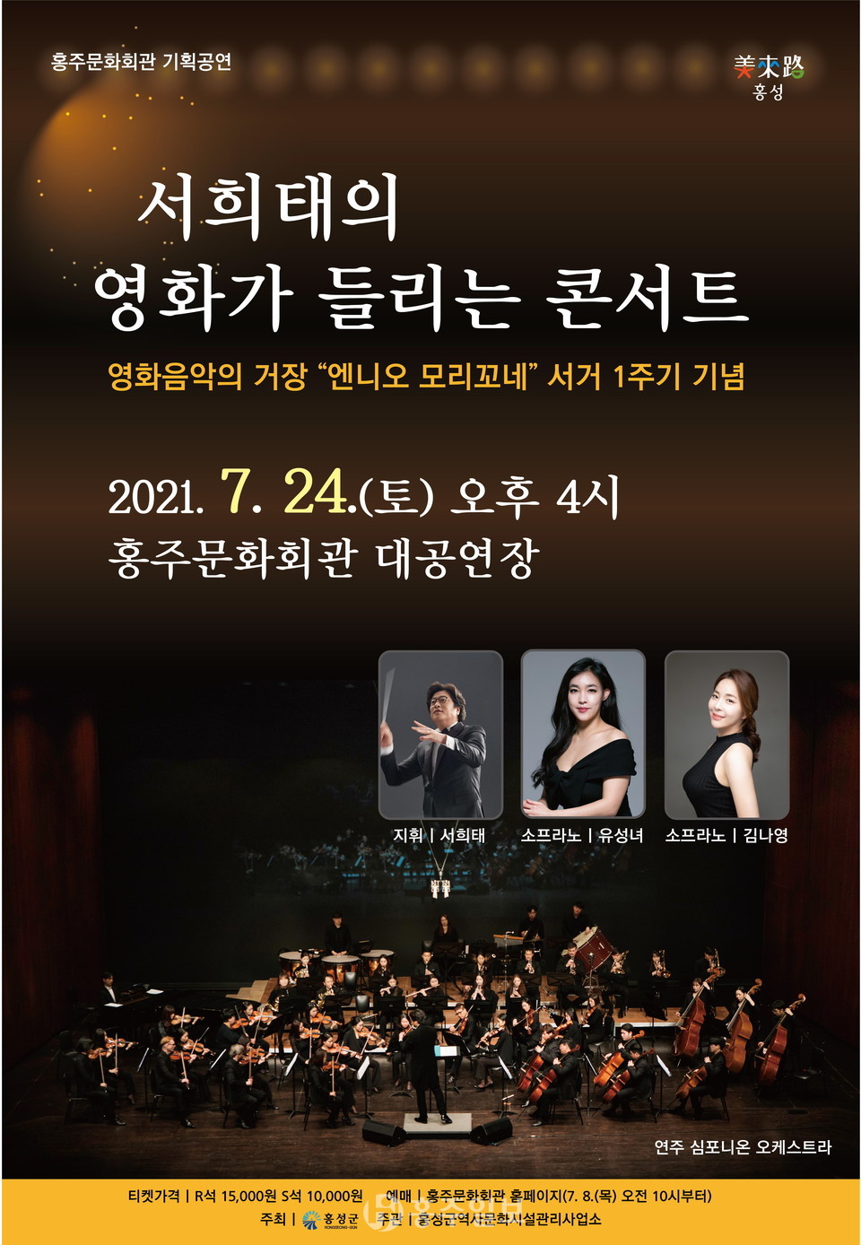 홍성군은 전 세계가 사랑한 영화음악의 거장 ‘엔니오 모리꼬네’ 서거 1주기를 기념해 온 가족이 함께 즐길 수 있는 ‘서희태의 영화가 들리는 콘서트’를 오는 24일 홍주문화회관 대공연장에서 개최한다.