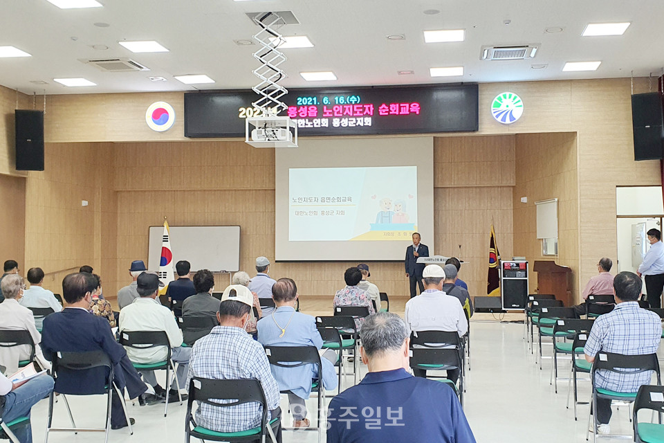 대한노인회홍성군지회(지회장 조화원)는 경노당 회장·사무장 800여 명에 대한 순회교육을 지난 2일 은하면 분회를 마지막으로 모두 마쳤다.<사진>