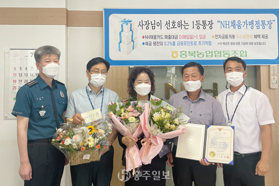 홍성경찰서(서장 조대현)는 지난 7일 홍북농협 산수지점을 방문해 전화금융사기 피해를 예방한 직원 A씨에게 감사장을 수여했다고 밝혔다.<사진>