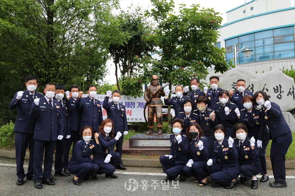 지난 7일 ‘의용소방대의 날’ 기념 홍성서에 동상 세워