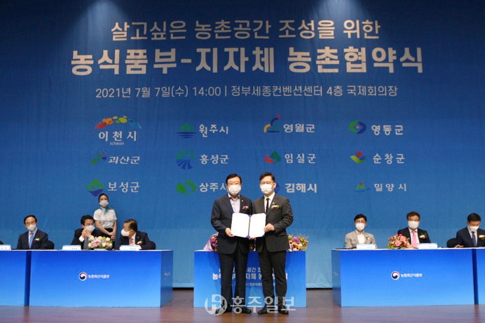 홍성군이 지난 7일 농림축산식품부와 농촌협약을 체결해 국비 182억 원을 확보했다.