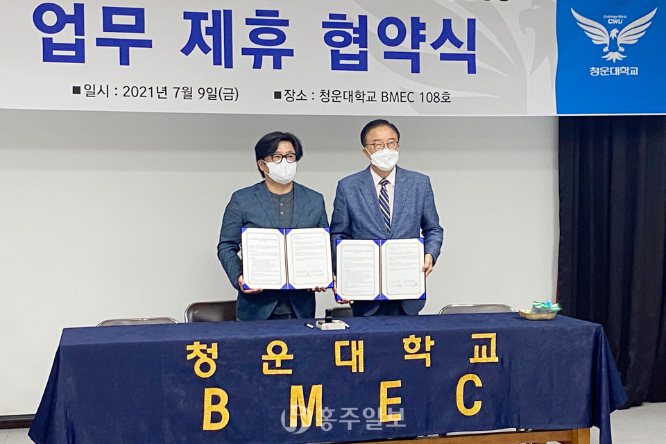 청운대학교 공연영상교육지원센터(센터장 유재응)는 지난 9일 WBC복지TV충남방송(사장 최칠원)과 상호교류 협력을 위한 업무 협약식을 체결했다.<사진>