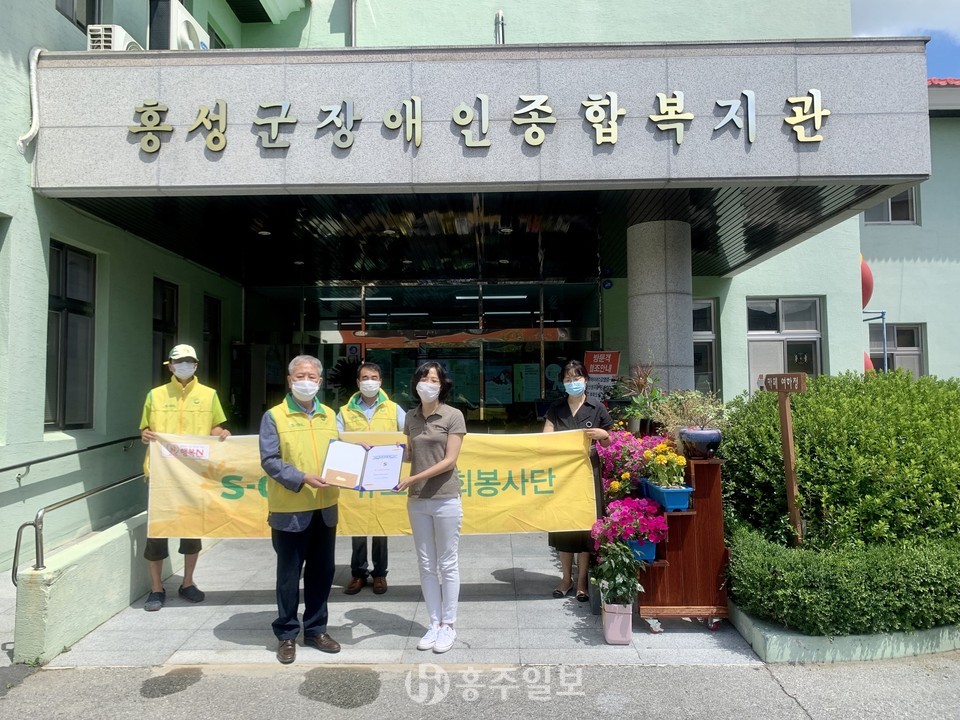 에쓰오일(S-Oil) 주유소 사회봉사단은 지난 15일 홍성군장애인종합복지관(관장 복천규)에 100만 원 주유상품권을 전달했다.<사진>