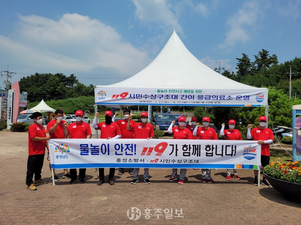홍성소방서(서장 김성찬)는 16일 서부면 속동갯벌체험장에서 서부면 의용소방대원(대장 임일영, 여대장 손명숙) 35명을 대상으로 119시민수상구조대 발대식과 교육훈련을 실시했다.<사진>