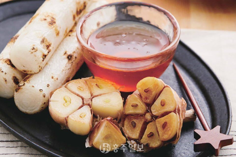 대표적인 레시피로는 △홍성마늘 조청과 가래떡구이<사진> △홍성마늘 냉이페스토 냉파스타 △홍성마늘 토마토소스 한우갈비 등이며, 자세한 조리 방법은 농업기술센터와 군청 홈페이지를 통해 배포될 예정이다.