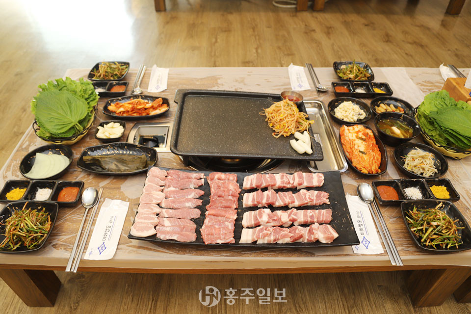 우리 가게 고기는 기본적으로 직접 광천 도축장에서 유통해 와요. 돼지고기 같은 경우에는 선별된 암퇘지로 2주정도 숙성을 거치는데 일정한 시간이 지나면 남김없이 모두 소진되도록 철저하게 관리하고 있어요.
