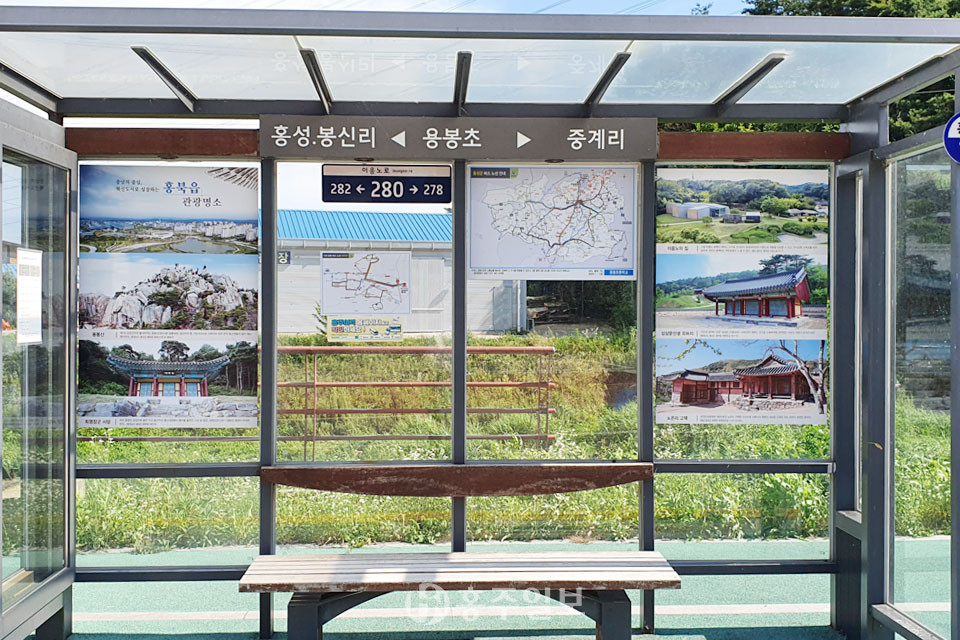 홍북읍(읍장 안기억)이 관내 버스승강장 27개소에 용봉산, 홍예공원, 이응노의 집 등 지역 관광명소 사진을 부착해 홍보효과를 기대하고 있다.