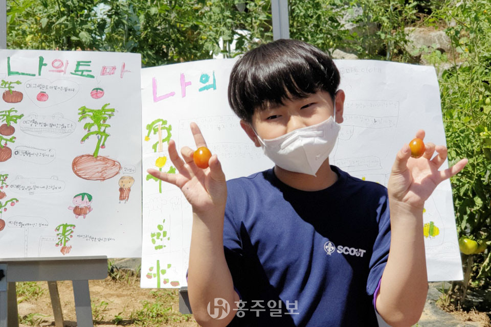 학생들은 농·어민 명예교사와 함께 학교 안 텃밭에 토마토, 오이, 가지 등 다양한 농작물을 심고 가꾸고 돌보고 있다. 또한 학생들은 뜨거운 여름 햇살 아래에서 함께 땀을 흘리며 식물을 관찰하고 기록하며 나누는 활동을 실시했다.<사진>