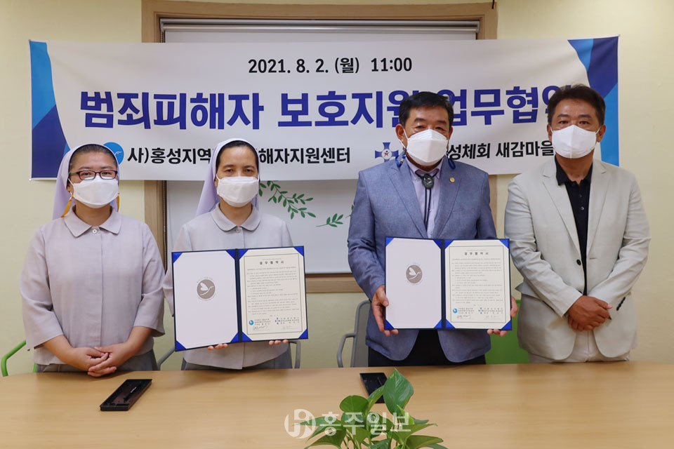 홍성지역범죄피해자지원센터(이사장 백영기)는 지난 2일 천주교성체회 새감마을과 범죄피해자 보호·지원을 위한 업무협약을 체결했다.<사진>