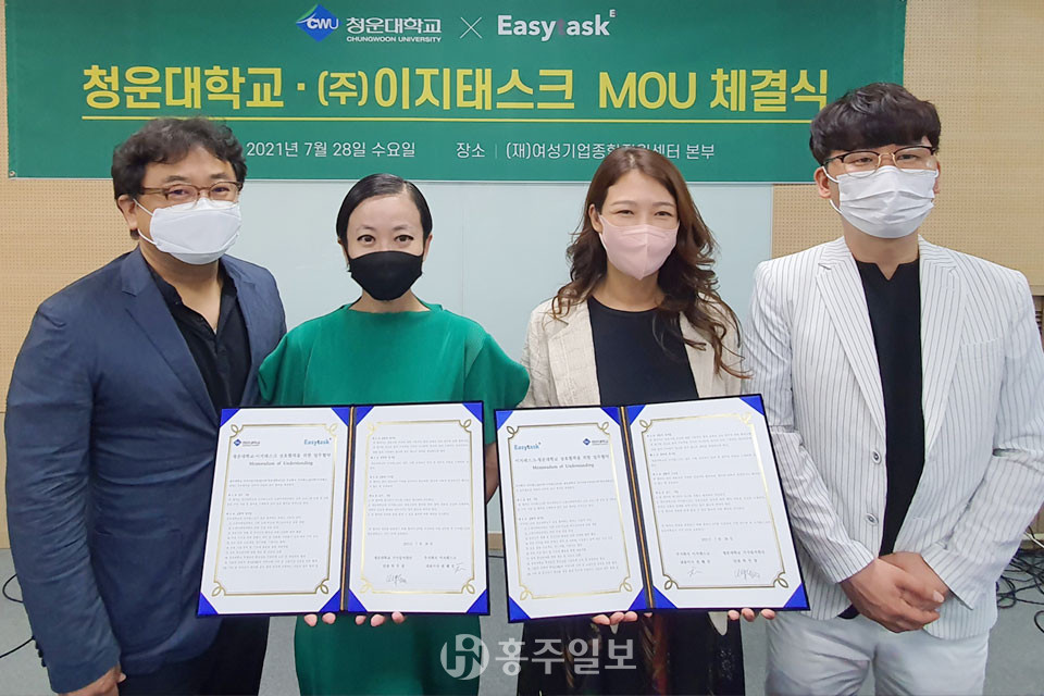 전혜진 이지태스크 대표는 “청운대의 취업 연계 국가 근로 인턴십 지원과 이지태스크의 비대면·과업별 업무 분배 시스템을 통해 일자리 미스 매칭과 지역 불균형 문제를 풀어 보려한다”고 포부를 밝혔다.
