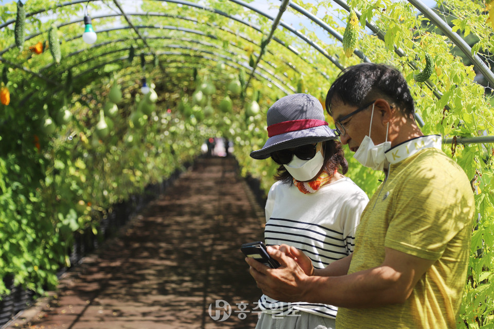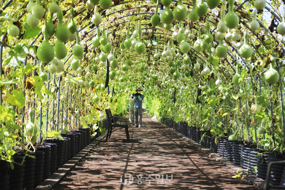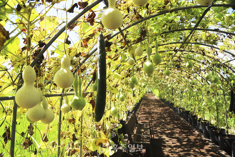 마을 주민들은 자신들이 직접 만든 조롱박 공예품과 조롱박 터널을 둘러보며 즐거워했다.