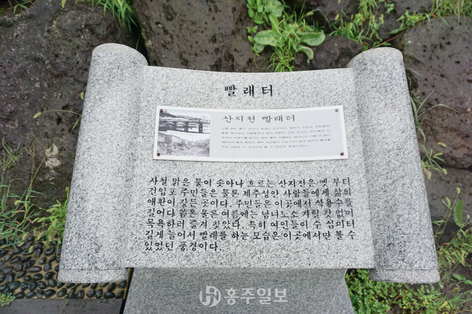 산지천(산지내) 하구의 옛 모습은 빛바랜 사진과 그림을 통해서만 남아 있다. 초가와 갯가 지형에 따라 작은 배를 댔고, 사람들이 이동했던 자연포구였음을 어렴풋이나마 짐작할 수 있다. 해안으로 길게 뻗은 동·서부의 두 방파제와 각종 대규모 항만시설, 빌딩 숲을 이룬 현재의 모습에서 옛 산지천 포구를 떠올린다는 것은 어쩌면 부질없는 일인지도 모른다. 벌거벗은 채로 벗들과 멱을 감던 추억과 아낙네들이 빨래하고 허벅으로 물을 길러 나르던 정겨운 풍경이 있던 곳이 바로 산지내였다는 설명이다.