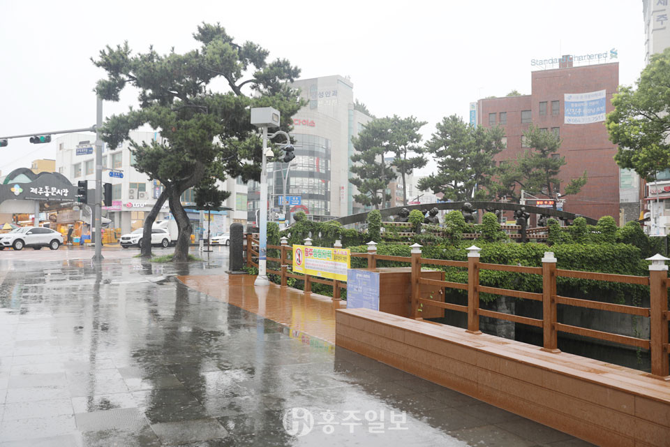 복원된 산지천, 교량 4개 121개 분수물기둥 설치 시민들 휴식공간 거듭나