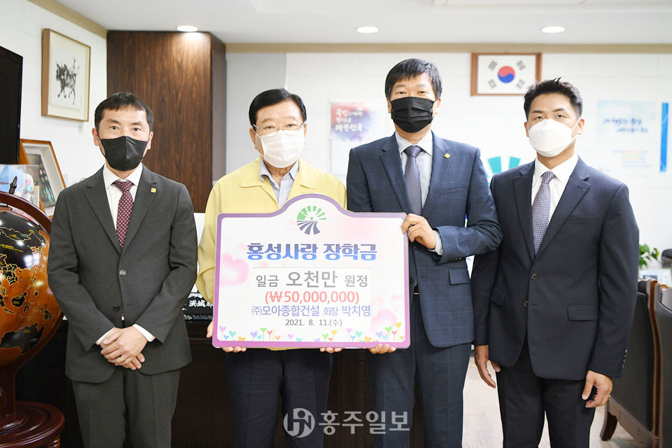 모아건설(주) 김래준 대표는 “홍성에서 받은 관심과 성원에 보답하고자 미래 인재 육성을 위한 장학금 기탁을 결정했다”며 “이곳에서 나고 자라는 학생들이 충청지역을 넘어 대한민국을 이끌어 갈 인재가 되길 희망한다”고 말했다.