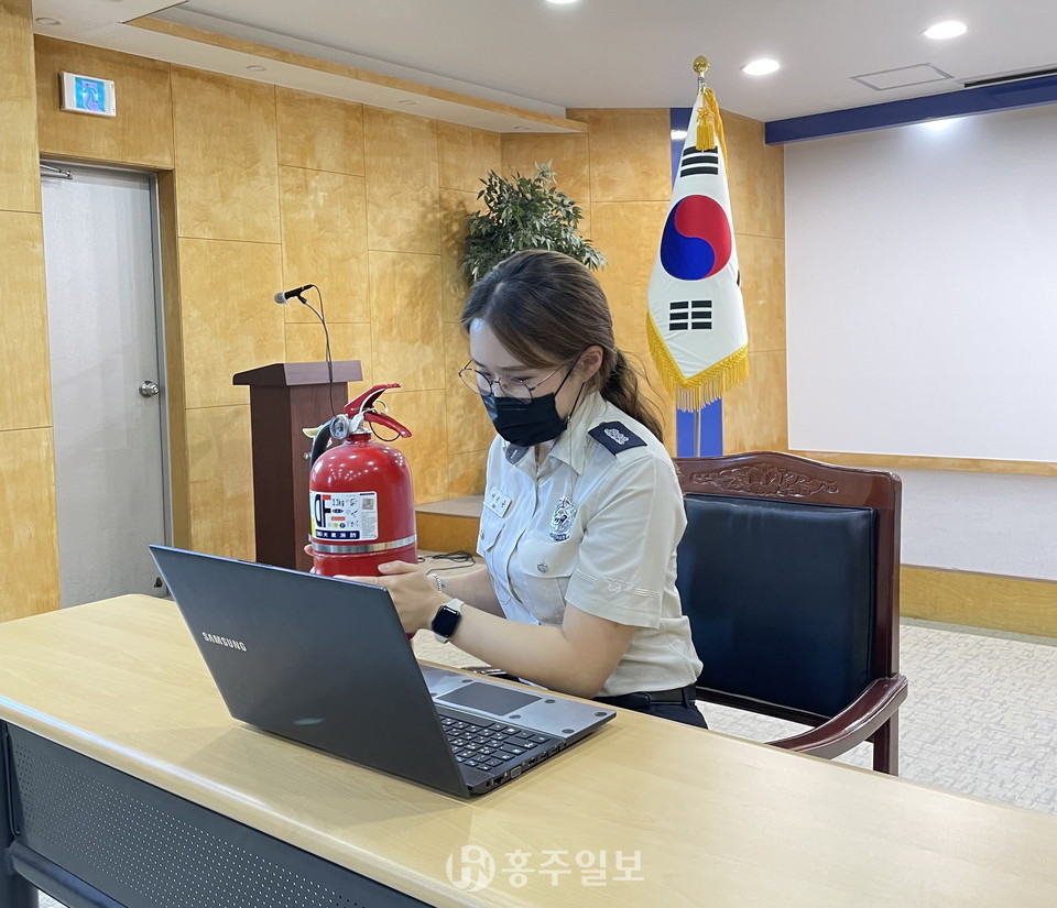 관계자에 따르면 비대면 소방안전교육 시간은 약 30분가량이다. 홍성소방서 대응예방과로 전화 신청 접수가 이뤄지고 있으며 신청이 접수 되면 신청자와 협의를 통해 일정이 정해진다.