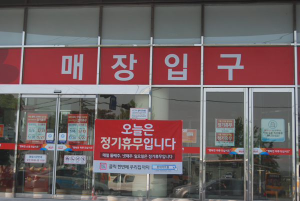 관내 대형마트에 대한 월 2회 의무휴업이 시행됨에 따라 관내 유일한 대형마트인 롯데마트가 지난 13일 첫 정기 휴업에 들어갔다.