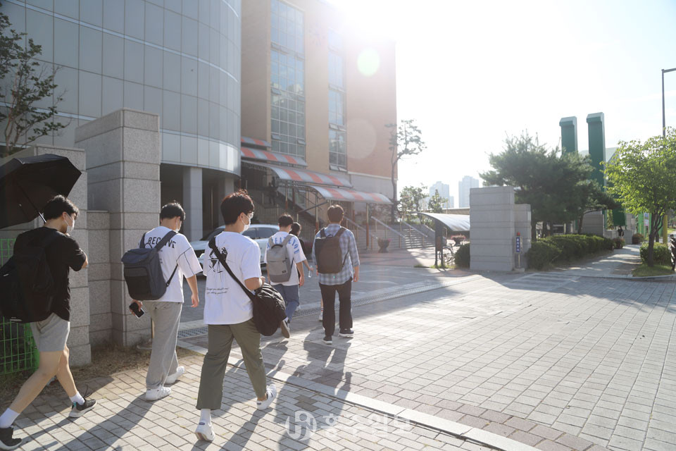김 교육감은 “학생들의 배움과 성장을 위해서는 등교 수업이 꼭 필요하고 학생들의 전인적 성장을 도모할 교육 회복은 조속히 추진돼야 한다”고 강조했다. 사진은 지난 19일 등교하는 홍성고등학교 학생들.