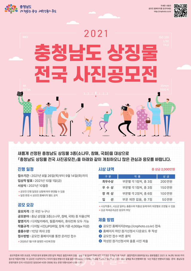 공모 기간은 26일부터 다음달 14일까지로, 전국민(외국인 포함) 누구나 사진전 전용 사이트(http://cnphoto.co.kr)를 통해 응모할 수 있다.