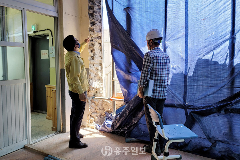 홍성교육지원청(교육장 김성수)은 지난 10일 관내학교 2개교(홍동중학교, 금마중학교)를 방문해 교육시설 공사현장 안전점검을 실시했다.<사진>