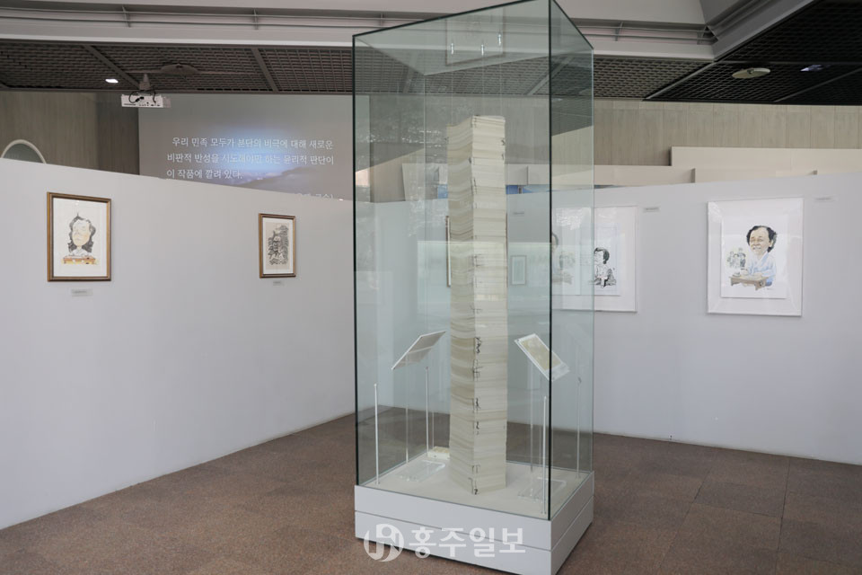 태백산맥문학관에 전시된 1만 6500장의 육필 원고, 관람객의 시선을 압도