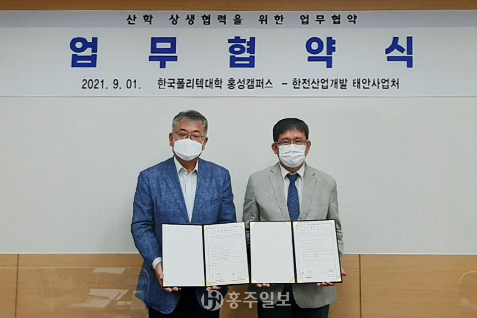 한국폴리텍대학 홍성캠퍼스(학장 장우영)는 1일 대학본부 2층 회의실에서 한전산업개발(주) 태안사업처와 ‘상호교류협력을 위한 업무협약’을 체결했다.<사진>