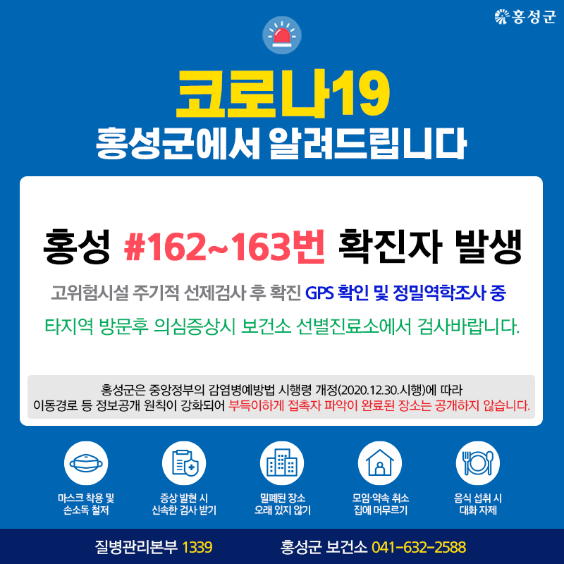 홍성 #162번, #163번 확진자 발생 고위험시설 주기적 선제검사 후 확진 - CCTV 확인 및 정밀 역학 조사 중 Tag #홍성군 #코로나19 #확진자 #발생 저작권자 © 홍주일보 무단전재 및 재배포 금지 한기원 기자 다른기사 보기 페이스북 카카오톡 URL복사 기사공유하기