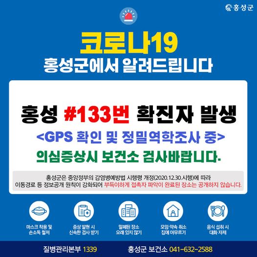 홍성 #133번 확진자 발생 - GPS 확인 및 정밀역학조사 중 Tag #홍성군 #코로나19 #확진자 #발생 저작권자 © 홍주일보 무단전재 및 재배포 금지 한기원 기자 다른기사 보기 페이스북 카카오톡 URL복사 기사공유하기