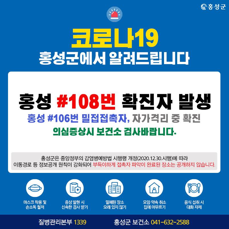 #홍성106번 밀접접촉자, 자가격리중 확진