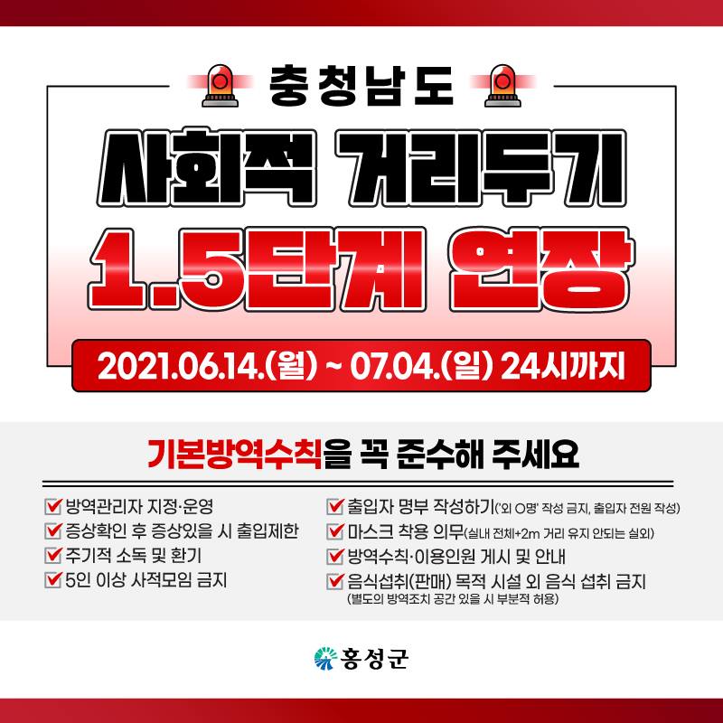 사회적 거리두기 1.5단계 3주 연장 (2021.06.14.(월) ~ 07.04.(일) 24시까지)