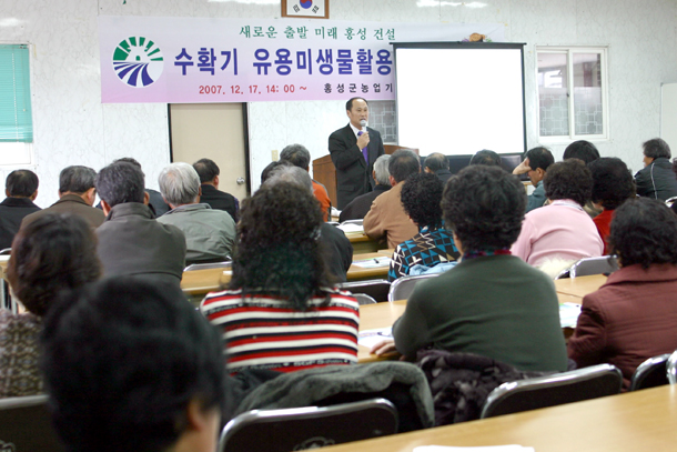 홍성군에서 우수농산물 생산과 친환경농업을 위한 ‘유용미생물 활용 기술교육’이 실시되어 농업인들의 관심을 모았다.