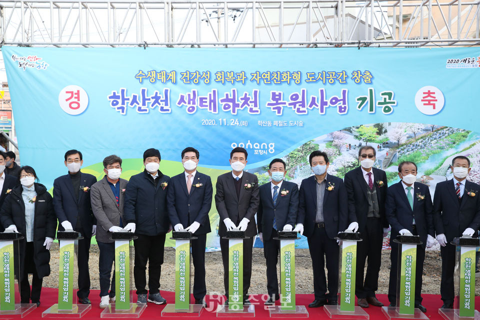 학산천 복원사업은 올해 초 착공해 그동안 우회도로 개설 등 공사를 위한 사전준비를 완료하고, 복개하천 철거를 시작으로 공사를 추진하고 있다. 포항시가 지난해 12월부터 시작한 학산천 생태하천복원사업은 동빈내항부터 순차적으로 진행하고 있다. 학산천의 복원사업은 나루끝, 우현 도시 숲으로부터 시작해 포항중학교, 중앙동행정복지센터, 롯데백화점 등을 지나 동빈내항까지 이어진 900m의 복개하천을 생태하천으로 복원하는 사업이다.