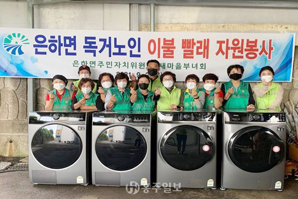 은하면(면장 강애란)은 주민자치위원회(위원장 신동규), 새마을부녀회(회장 김미자)와 함께 민·관 협력으로 지역의 독거노인이나 어려운 이웃을 위한 이불빨래 자원봉사를 실시한다.