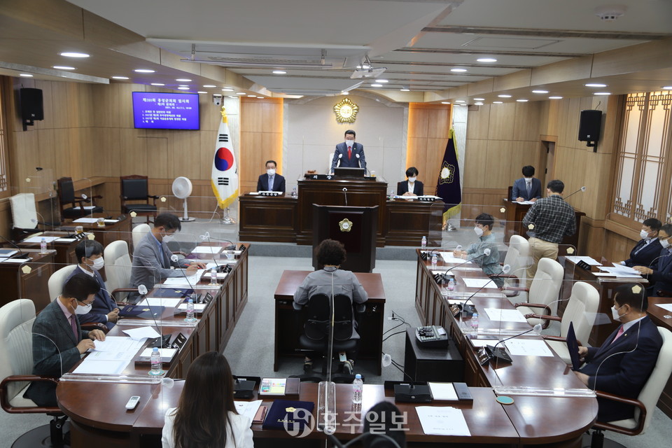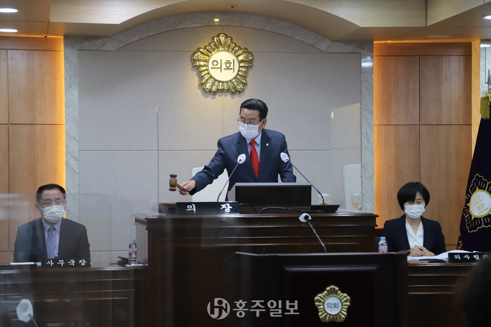 홍성군의회(의장 윤용관)가 15일 1시간가량 늦게 열린 제280회 임시회 2차 본회의에서 2021년도 제2회 추가경정예산 약 8134억 원을 의결했다.<사진>