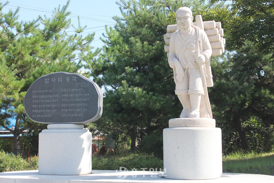 예산군 삽다리 공원에 삽다리 총각 석상과 노래 기념비 세워져