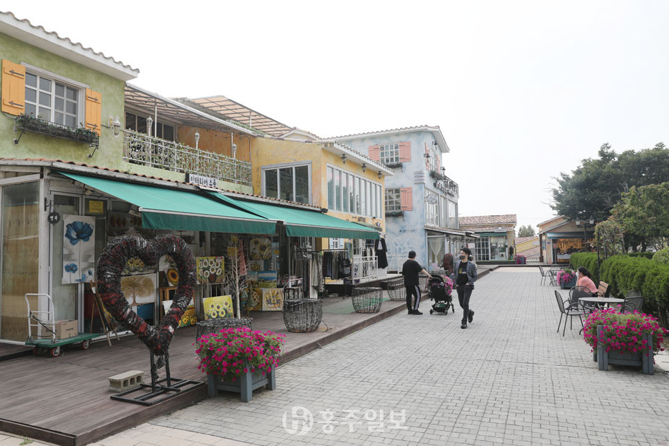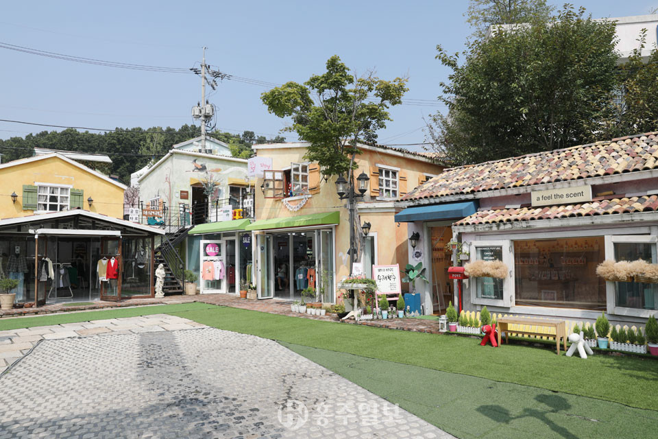 프로방스마을은 프랑스 레스토랑에서 시작해 점차로 영역이 확대돼 이제는 크고 작은 40여 개의 건물들이 들어선 유럽형 마을로 발전했다. 프로방스마을은 프랑스풍의 건축물로 꾸며져 있어 이국적인 느낌을 자아내고 있다. 다양한 파스텔컬러의 벽체 위로 붉은 오지기와 지붕을 한 건물들이 나지막한 구릉 위에 자연스레 배치돼 마을을 형성하고 있다. 건물들은 다양한 카페, 레스토랑, 인테리어 소품, 허브용품, 의류매장, 베이커리 등의 다양한 상점들로 구성돼 있다. 이국적인 건물과 아기자기한 골목에는 유럽풍 베이커리와 이탈리안 레스토랑, 한국음식점을 비롯해 트랜드를 선도하는 패션과 생활용품, 카페, 체험시설 등 다양한 상점들이 방문객들에게 삶의 여유를 제공한다. 이러한 건물들은 독립된 운영으로 소유주들의 독창적인 마케팅이 발휘되면서도 마을 전체가 하나로 어우러지는 공동체를 이루고 있다. 심지어 이 마을에서 사용되는 그릇류를 직접 제작하는 도자기 공방도 함께 있어 마치 마을 전체가 자급자족이 이뤄지고 있는 전통마을의 느낌마저 그대로 전해주고 있는 동네다.
