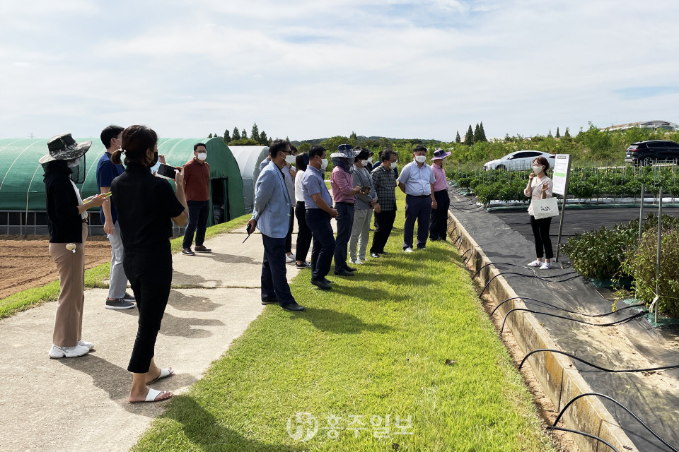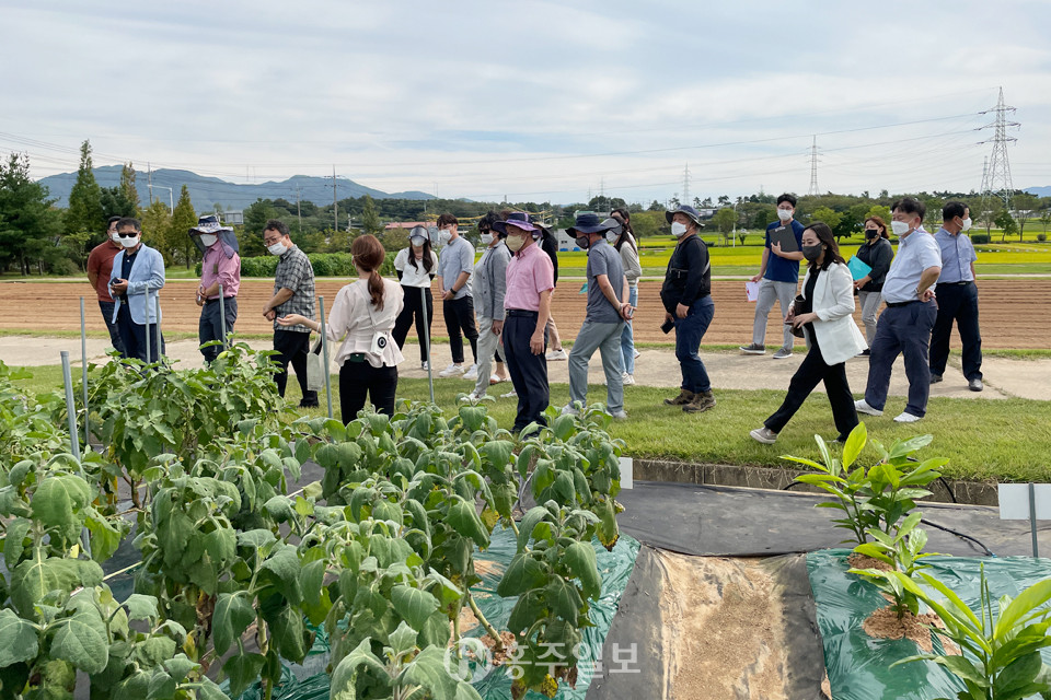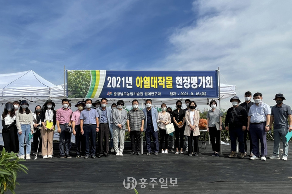 충남도 농업기술원은 지난 16일 기술원 내 아열대작물 시험포에서 아열대 작물 도내 적응 현장 평가회를 개최했다.<사진>