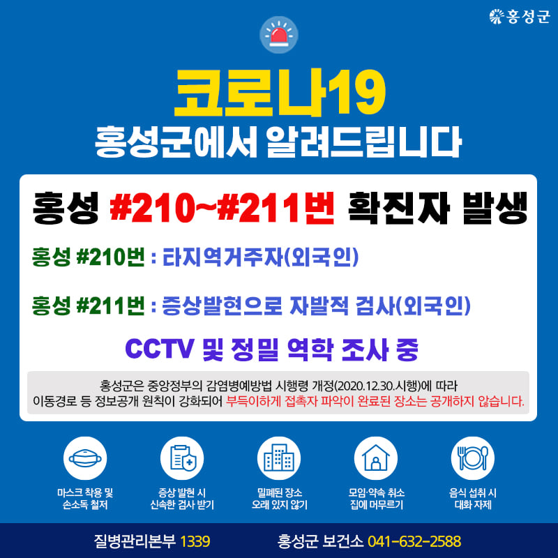 홍성 #210번 ~ #211번 확진자 발생