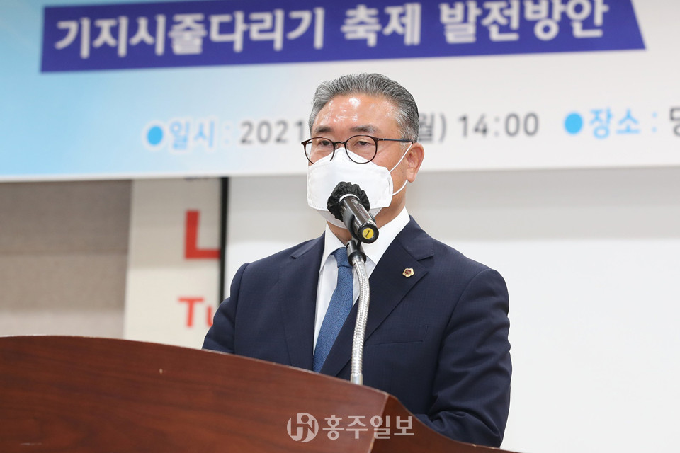 좌장을 맡은 김명선 의장은 “코로나19 팬데믹 상황에서 기지시줄다리기의 전통적 가치인 대동단결의 정신은 지역을 넘어 세계인이 공유할 수 있는 가치가 될 것”이라며 “기지시줄다리기의 독창성을 기반으로 SNS 등 미래세대와 소통할 수 있는 비대면 콘텐츠 개발과 홍보전략 마련이 필요하다”고 강조했다.