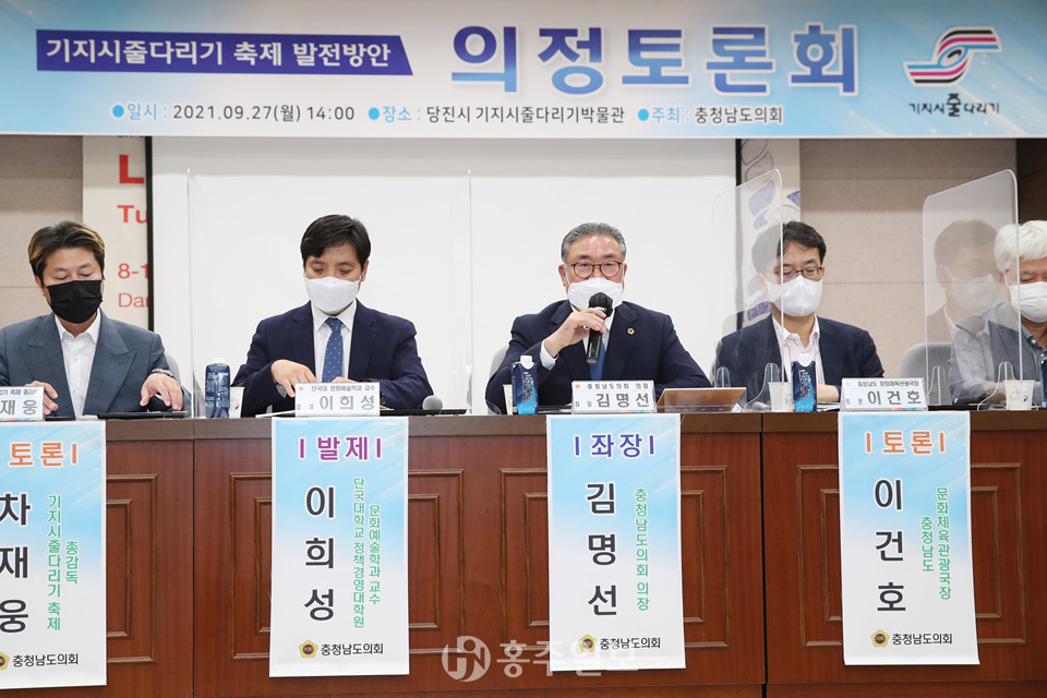 토론회에서 이희성 단국대 교수가 축제 발전을 위한 정책방향 진단을 주제로 기조발제를 했으며, 이건호 충남도 문화체육관광국장, 이인배 충남연구원 수석연구위원, 차재웅 기지시줄다리기 축제 총감독과 김영구 당진시 문화복지국장 등이 토론자로 나섰다.