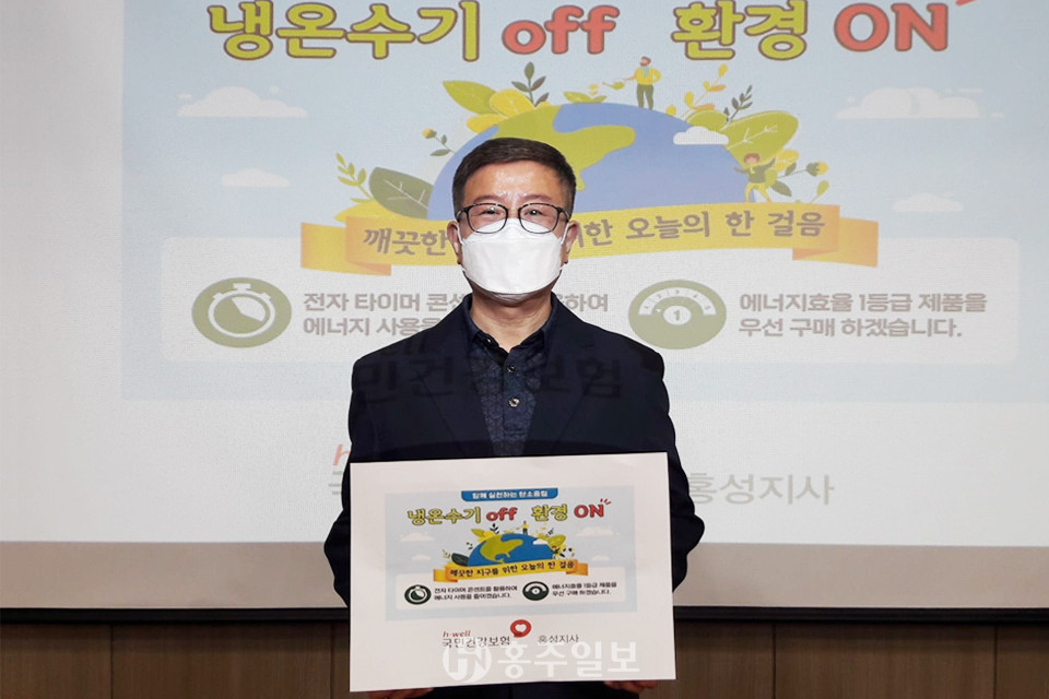 국민건강보험공단 홍성지사(지사장 이성복)는 지난 27일 생활 속 에너지절약 탄소중립 실천을 위한 ‘냉온수기 OFF, 환경 ON’ 챌린지에 동참해 작은 에너지 절약의 시작으로 깨끗한 지구를 위한 한걸음을 보태겠다는 실천의지를 표명했다.<사진>
