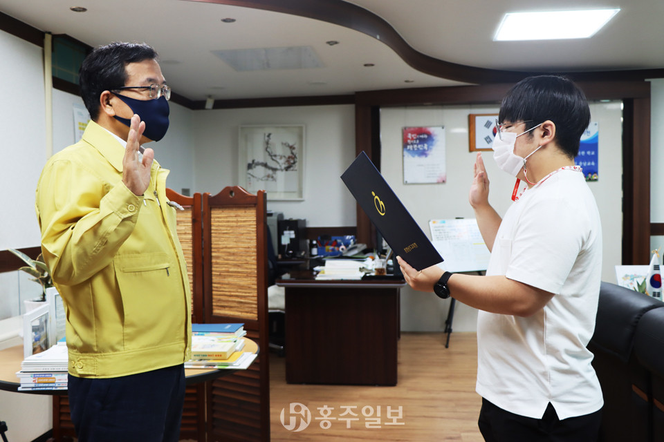 이 날 서약식은 9월 1일자 신규 발령받은 교육과 김지호 주무관이 서약대표로 나서 내년 5월 19일부터 시행 예정인 ‘공직자 이해충돌방지법’의 의미를 되새기고, 지역민의 신뢰를 확보하기 위한 공정한 직무수행을 다짐하는 시간을 가졌다.