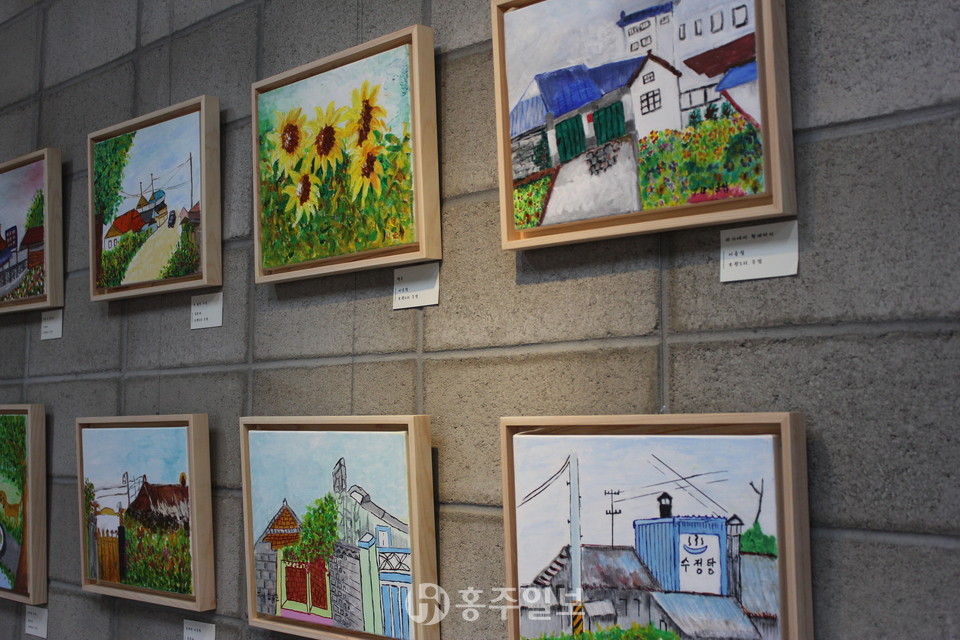 도시재생 주민참여사업의 일환으로 홍성군이 주최하고 홍성군도시재생지원센터가 주관한 2021 “으라차차!!” 도시 활력 찾기 프로젝트 ‘동문동 우리동네 미술교육 전시회’가 ‘동문동 추억 이야기’라는 제목으로 지난 27일부터 아문길벗에서 열리고 있다.<사진>