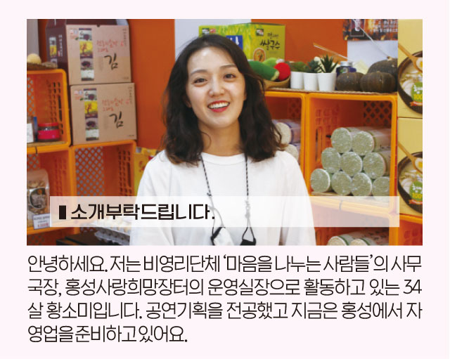 고령화 사회에 접어든 홍성군, 여전히 홍성에 계속 남아 정착하고 열심히 일하고 있는 청년들도 많음을 알리고 청년의 시선으로 바라본 홍성에 대한 이야기를 들려주고자 한다.