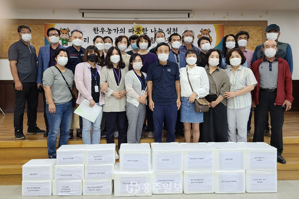 전국한우협회 홍성군지부(지부장 이지훈)에서 지난 17일 홍성축산회관 2층 회의실에서 쇠고기(364만 원 상당, 91kg)를 어려운 이웃과 소외계층에게 나누는 행사를 했다.<사진> 관계자에 따르면 18개 단체 400여 명이 대상이 됐다.