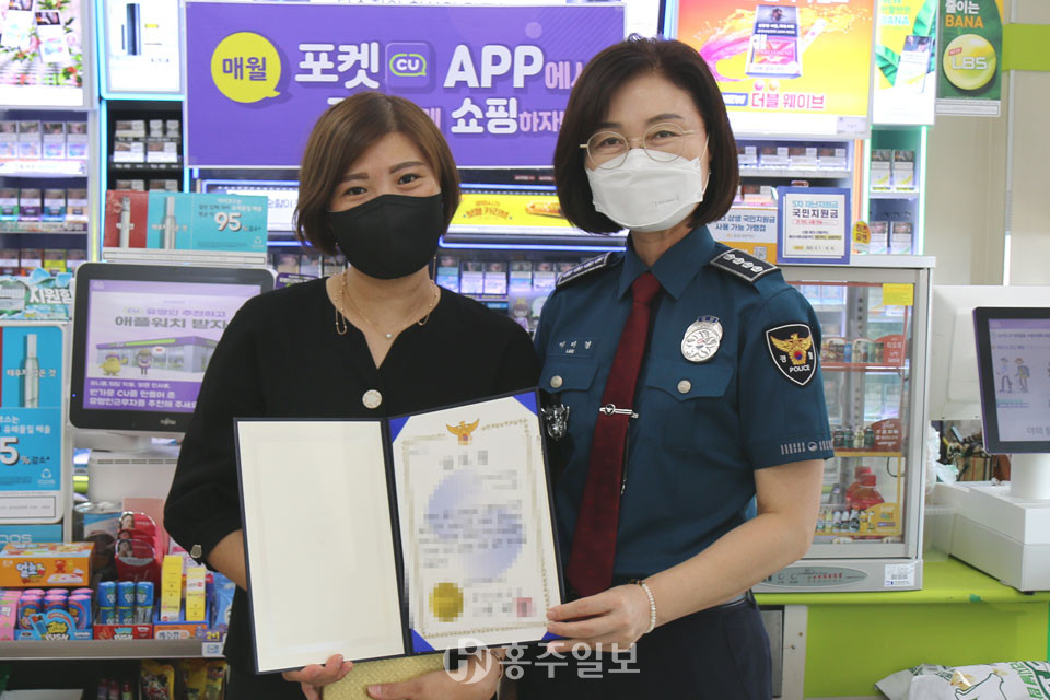 예산경찰서(서장 이미경)는 지난 24일 연인 사기(로맨스스캠) 피해를 예방하는데 기여한 관내 편의점을 직접 방문해 점주 이 아무개 씨에게 감사장을 수여했다.<사진>