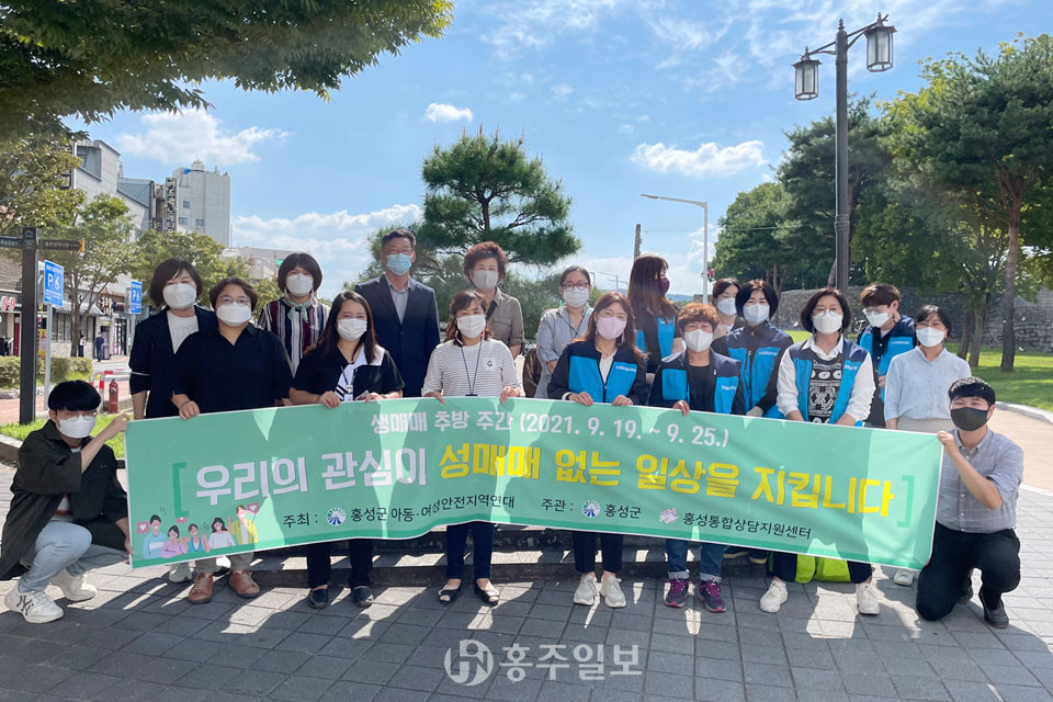 홍성군은 지난 24일 성매매 추방주간을 맞아 성매매 방지와 성매매에 대한 사회적 경각심을 높이기 위해 ‘홍성군 아동‧여성 안전지역연대(이하 안전지역연대)’와 함께 성매매 예방 캠페인을 추진했다.<사진>
